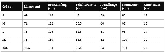 Unsere Größentabelle findest du auf jeder Produktseite ganz unten beim letzten Bild.